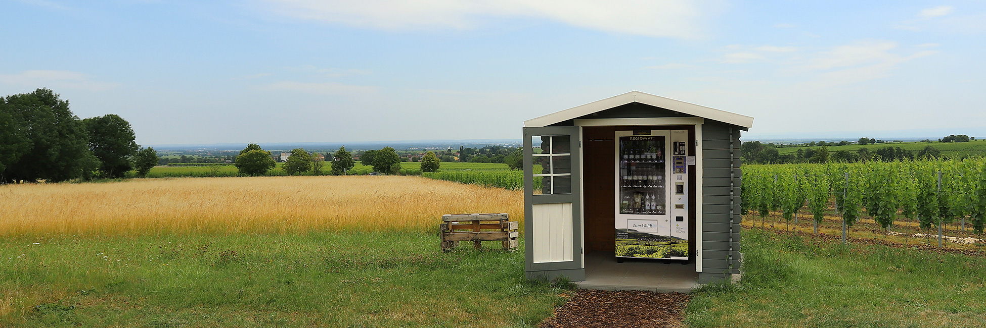 Hier können Sie jederzeit unseren Wein und andere Getränke wie z.B. Traubensaft oder Mineralwasser bequem, gekühlt und einfach kaufen.